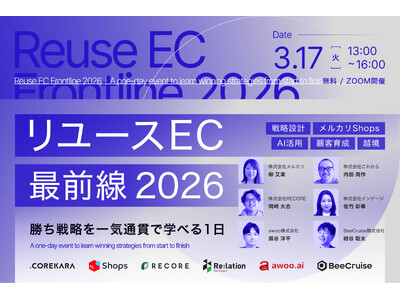 小売・リユース向けクラウド型基幹システム「RECORE(リコア)」を提供する株式会社RECORE(本社:大阪府吹田市、代表取締役:佐藤秀平)は、本日2026年3月17日(火)13:00より、株式会社これから(本社:東京都新宿区、代表取締役:今泉雄太)が主催する、リユースECエキスパート6社共催ウェビナー「リユースECの最前線2026 ~勝ち戦略を一気通貫で学べる1日~」に登壇することをお知らせいたします。