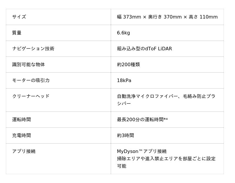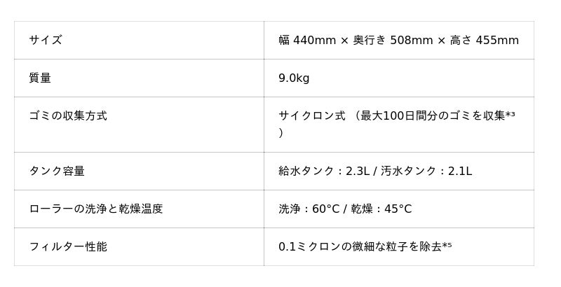 *4 障害物のない環境で静音モードを使用した場合の最長運転時間。実際の使用状況や床面により異なる場合がございます。
