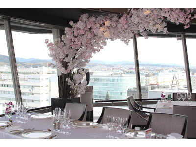 桜が咲き誇る春の京都の風情を館内でも感じていただけるよう、1階ホテルロビーには桜の生花を設え、春の息吹を感じる空間でお迎えします。最上階の回転展望フレンチレストラン「フレンチダイニング トップ オブ キョウト」では、天井まで広がる桜のアーチを見上げながら、ゆるやかに移ろう春の京都の景色とともにフランス料理をご堪能いただけます。また「オールデイダイニング カザ」店頭では、満開の桜を模した華やかなトンネルが登場し、春の雰囲気を演出します。