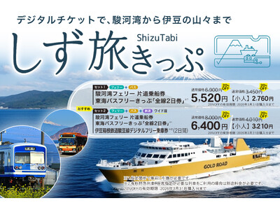 デジタルチケットの第1段として、駿河湾フェリー、東海バス、伊豆箱根鉄道の環駿河湾地域の交通機関の乗車券等がセットになった「しず旅きっぷ」を販売します。