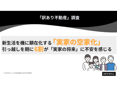 実家じまいなど相続に伴う不動産課題を”ワンストップで対応”する訳あり不動産買取事業「ワケガイ」を展開する株式会社ネクスウィル(本社:東京都港区新橋 代表取締役:丸岡 智幸)は、全国の20歳以上49歳以下の男女600名を対象に、新生活に伴う実家の居住状況や将来不安に関する実態調査を実施しました。