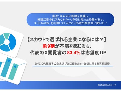 株式会社給与アップ研究所(東京都千代田区、代表取締役:高橋恭介)は、グループ会社である株式会社SNSコーチ(代表取締役:同)にて、X(旧Twitter)を活用した企業発信と採用活動の関係性について調査した「20代30代転職者の企業選びとX(旧Twitter)発信に関する実態調査」を公開しました。
