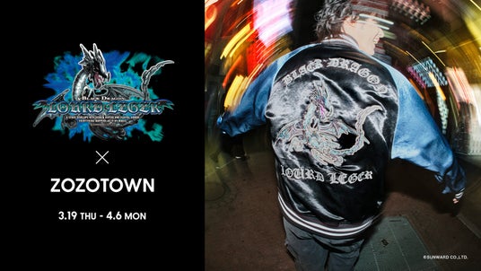 今回は、青い炎のグラフィックを取り入れたバケットハットやエプロンなど8型のアイテム販売(※)に加え、初代ドラゴン「LOURD LEGER(ルール・レジェ)」を刺繍であしらったスカジャンを100点限定で抽選販売します。キャラクターのノスタルジックなイメージを残しつつ、大人も楽しめる現代ストリートスタイルに仕上げています。