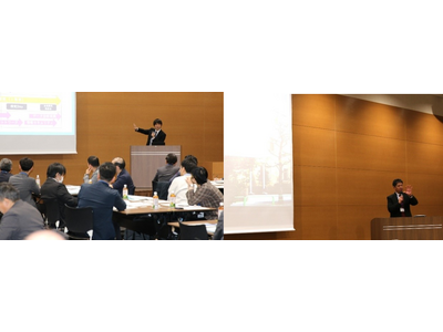 芝浦工業大学柏中学高等学校 越野貴嗣教諭(写真左)と神田女学園中学校高等学校 芦澤康宏学校長(写真右)による発表