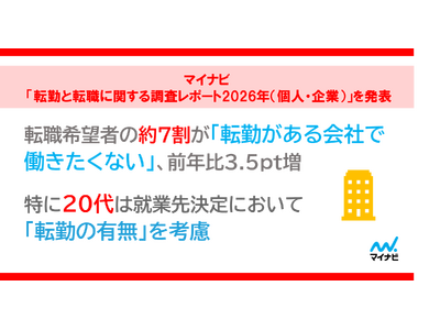 株式会社マイナビ(本社:東京都千代田区、代表取締役 社長執行役員:粟井俊介)は、20~50代の転職を希望している正社員と企業の中途採用担当者を対象に実施した、「マイナビ 転勤と転職に関する調査レポート2026年(個人・企業)」の結果を発表しました。今年で2回目の調査となります。