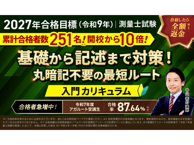 株式会社アガルート(本社:東京都新宿区、代表取締役:岩崎 北斗、以下「アガルート」)が運営する「アガルートアカデミー」は、2027年度合格目標の測量士試験対策講座|入門総合講義/入門カリキュラム(フル・ライト)をリリースいたしました。