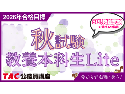 公務員試験対策講座を展開しているTAC株式会社(東京都千代田区、代表取締役:多田敏男)は、2026年秋に実施される公務員試験に向けた対策コース「秋試験 教養本科生Lite」を現在開講中です。