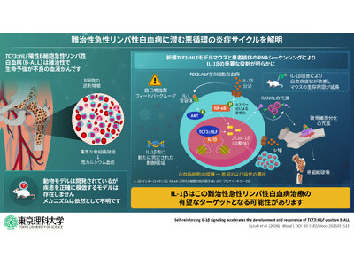 東京理科大学 生命医科学研究所の伊川 友活教授、同大学大学院 生命科学研究科の鈴木 藍彩氏(博士課程3年)、山梨大学大学院 総合研究部 医学域臨床医学系(小児科学)の犬飼 岳史教授らの研究グループは、難治性の急性リンパ性白血病(ALL)において、病気の進行と骨破壊という重篤な合併症が同時に引き起こされる新たな分子メカニズムを発見しました。