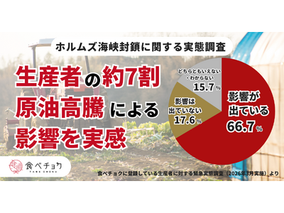 認知度・利用率など9つのNo.1(※1)を持つ日本最大の産直通販サイト(※2)「食べチョク」を運営する株式会社ビビッドガーデン(本社:東京都港区、代表取締役社長:秋元里奈)は、登録生産者を対象に、原油価格高騰が一次産業に与える影響に関する緊急アンケートを実施しました。