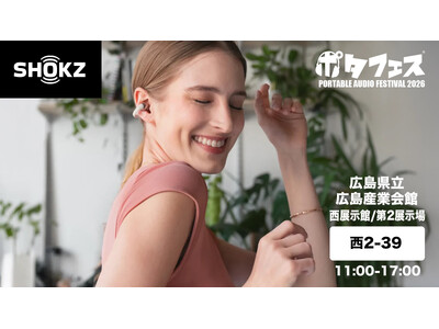フォーカルポイント株式会社(本社:東京都港区、代表取締役 恩田英樹)は、オープンイヤー型イヤホンブランド「Shokz」の国内代理店として、2026年3月21日(土)に広島県立広島産業会館 西展示館 第2展示場にて開催される、ポータブルオーディオの展示試聴イベント「ポタフェス 2026 広島」に出展いたします。