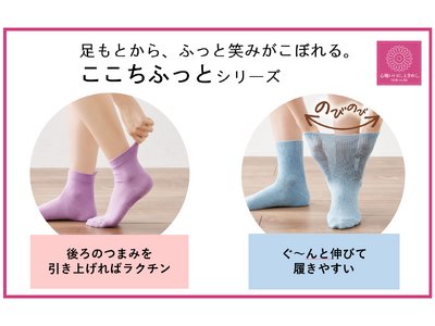 特に「着脱のしやすさ」に注目し、靴下を履く時のわずらわしさを少しでも軽減するために、後ろ側につまみを付けて引き上げやすくしました。