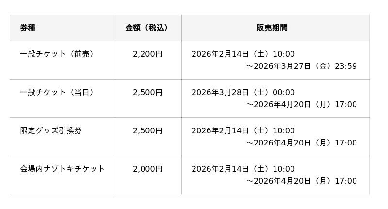 ・「限定グッズ引換券」および「会場内ナゾトキチケット」は、先着制販売です。なくなり次第販売終了となります。