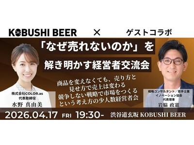 【4月17日(金)19:30~】「なぜ売れないのか」を解き明かす経営者交流会/主催:水野 真由美(COLOR.as 代表)× 岩脇 政憲(戦略コンサルタント/若手士業イノベーション協会 代表理事)
