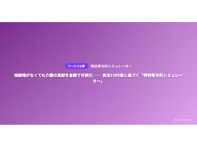 株式会社Mycatは、相続権を持たない親族が行った介護の貢献を金額として可視化する無料Webツール「特別寄与料シミュレーター」(