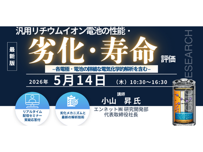 新規参入企業や新たに研究を始められた関係者、およびご経験をお持ちの研究者や企画関係者のために役立つように、リチウムイオン二次電池(LIB)の基礎、基礎特性評価、動作状態把握、電池の性能劣化とそのメカニズム、劣化度・寿命予測の評価方法、電池の性能確保に向けて、特に充放電曲線から得られる情報、印加パルスの応答計測やインピーダンス計測を用いた評価・解析法について、基礎からじっくりと電気化学法をベースに解説します。市場で汎用されているLIBの基礎特性の紹介や、最新の測定・評価法や材料開発も紹介し、周辺の研究動向を明らかにします。出荷時、動作時、リユース時の検査や開発中多数個セルの高速および高精度検査の新規診断や解析評価法の提案も行います。LIBの課題であるLi析出の評価法も紹介します。講義終了後には、講演内容に関するご質問に可能な範囲で回答いたします。