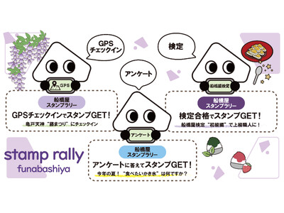 期間中は、亀戸天神社の藤まつりと連動したチェックイン企画や、アンケート参加など複数のスタンプ取得方法を設けています。