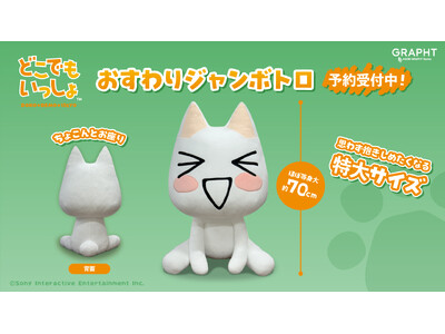 『GRAPHT』はこの度、GRAPHT公式ECサイト(GRAPHT OFFICIAL STORE)にて、株式会社ビサイド(本社:東京都立川市)が展開する「どこでもいっしょ」のトロのほぼ等身大ぬいぐるみ『おすわりジャンボトロ』の予約販売を行います。