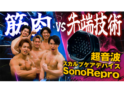 今回の「振動王グランプリ」では、PxDTの非接触振動圧刺激技術を搭載したスカルプケアデバイス「SonoRepro」と、厳選された5人のマッチョたちが振動の力を競い合いました。
