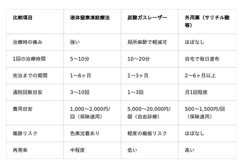 いぼ治療法の比較(液体窒素・レーザー・外用薬)