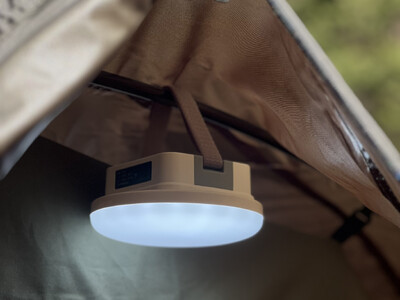 タープの高所に設置しても、わざわざ椅子に立ち上がることなく、手元でパッと点灯・消灯が可能です。