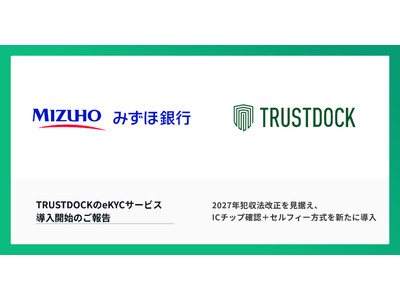 株式会社TRUSTDOCK(本社:東京都中央区、代表取締役:千葉 孝浩)はSocioFuture株式会社(本社:東京都港区、代表取締役 社長執行役員:菅原 彰彦)とともに、株式会社みずほ銀行(本店:東京都千代田区、取締役頭取:加藤 勝彦)のWEB口座開設において、犯罪収益移転防止法(以下、犯収法)施行規則「ヘ方式」に対応するeKYC(オンライン本人確認)サービス「TRUSTDOCK」のプランを追加提供を開始いたしました。