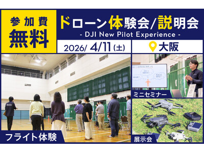 DJI(ディージェイアイ)正規販売代理店としてドローンビジネスの最前線を支える株式会社セキド(本社:東京都港区、代表取締役:大下貴之)は、株式会社旭テクノロジー(本社:兵庫県姫路市、代表取締役:幸長保之)と合同で、2026年4月11日(土)に大阪府大阪市で、ドローン操縦体験の無料イベント「DJI New Pilot Experience(ニュー・パイロット・エクスペリエンス)」を開催します。