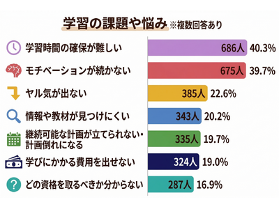 1,701名を対象とした本調査では、効率や低コストを求めて「独学」を選ぶ人が7割を超える一方で、効率を求めるほど陥る「独学の罠」の実態が浮き彫りになりました。現代の学習者が直面する「時間の確保」と「継続」の壁を、独自の視点で分析しています。