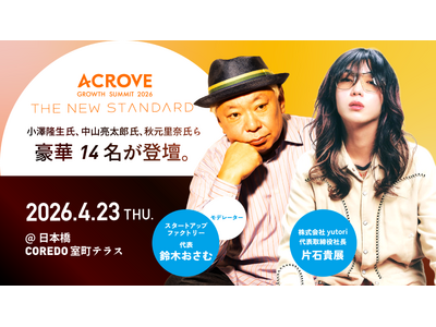 株式会社ACROVE(本社:東京都新宿区、代表取締役社長:荒井 俊亮)は、2026年4月23日(木)、日本橋・室町三井ホール&カンファレンスにて、事前登録制サミット「ACROVE GROWTH SUMMIT 2026」の追加登壇者が決定したことをお知らせいたします。