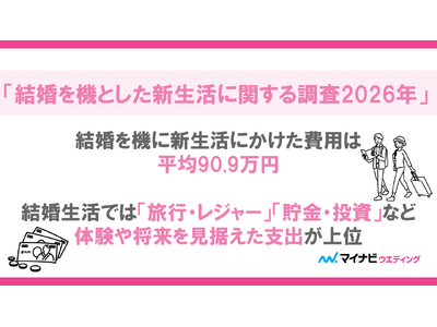 https://wedding.mynavi.jp/)は、2025年1月~2025年12月に結婚した20~39歳までの男女を対象にした、「結婚を機とした新生活に関する調査2026年」の結果を発表しました。