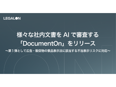 株式会社LegalOn Technologies(本社:東京都渋谷区、代表:代表取締役 執行役員・CEO 角田 望)は、様々な文書をAIで審査する「DocumentOn」をリリースいたします。その第一弾として、広告・販促物の表示内容が、景品表示法(景表法)の表示規制に準拠しているかをAIが審査します。