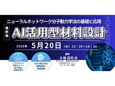 ここ数年、AI技術と計算科学を組み合わせた「ニューラルネットワーク分子動力学シミュレーション」が、大学などの研究機関のみならず、企業においても大きな注目を浴びています。特に、1.第一原理計算と同等の計算精度で大規模計算が可能、2.パラメータ開発の困難さからの脱却が可能、3.8元素種を越えるような多元素系への適用が可能、4.複雑な化学反応への対応が可能、5.二次元材料への応用が可能、などニューラルネットワーク分子動力学法はこれまでの分子動力学法に比較して多くの長所を有することから、その産業応用が加速度的に広がっています。しかし、その進展が非常に速すぎるために、ニューラルネットワーク分子動力学法を基礎から学ぶ機会が十分に提供されていない現状があります。そこで本セミナーでは、ニューラルネットワーク分子動力学法の基礎から応用までの講義を中心に行うとともに、ニューラルネットワーク分子動力学法の特徴・長所、さらにはニューラルネットワーク分子動力学法が得意な計算対象や課題、うまく計算できなかった場合の対処方法についても説明をさせて頂き、今後、ニューラルネットワーク分子動力学シミュレーションを行う時に、どのようなことに気をつけて行けば良いのかなど実践的な内容についてお話をさせて頂きます。聴講者の方には、ニューラルネットワーク分子動力学シミュレーションをいかに実際の企業における材料開発に応用可能であるか、どうすればニューラルネットワーク分子動力学シミュレーションを企業で有効に活用できるのかの基礎と将来戦略を理解して頂けるものと考えています。なお、各聴講者の方からの質問についても、可能な範囲で回答します。