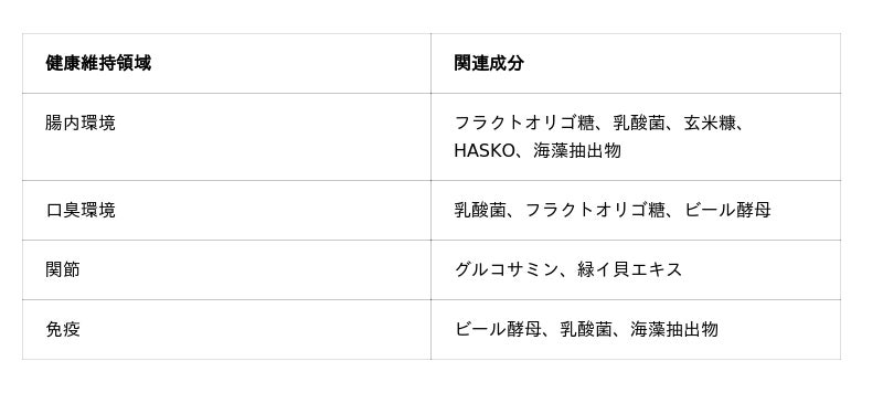 これらの成分を配合し、関節の健康維持に配慮した設計としています。