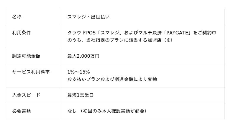 クラウドPOSレジ「スマレジ」を展開する株式会社スマレジ(本社:大阪市中央区、代表取締役:宮崎 龍平、以下「当社」)は、マルチ決済サービス「PAYGATE」をご利用の中小事業者様向けに、AI資金調達サービス「スマレジ・出世払い」を2026年3月25日(水)より提供開始いたします。「スマレジ・出世払い」は、BASE株式会社(本社:東京都港区、代表取締役CEO:鶴岡 裕太)の資金調達サービス「YELL BANK」と連携したサービスです。