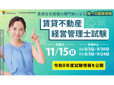 一般社団法人賃貸不動産経営管理士協議会(会長:中村 裕昌)は、令和8年3月25日(水)に、令和8年度賃貸不動産経営管理士試験(以下、本試験)実施要領を公開いたしました。