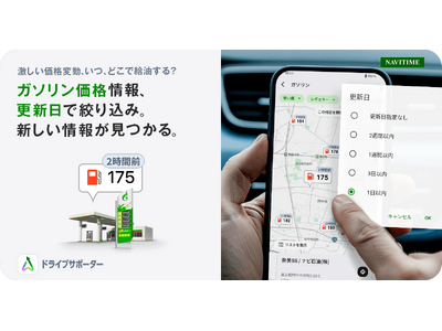株式会社ナビタイムジャパン(代表取締役社長:大西 啓介、本社:東京都港区)は、2026年3月25日(水)より、カーナビアプリ『NAVITIMEドライブサポーター』にて、「ガソリンスタンド検索」に更新日の絞り込み機能と、自社収集データを利用した、より鮮度の高いガソリン価格情報の提供を開始いたします。本機能はAndroid向けアプリにて先行対応し、iOS向けも近日対応予定です。