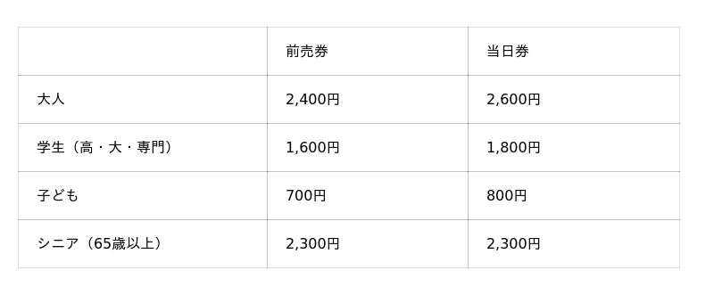 当日券 :3月27日(金) 00:00 ~ 6月28日(日)16:30まで