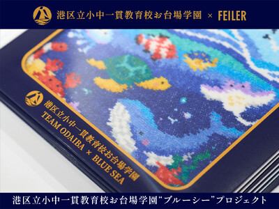 https://feiler.jp/ )にて発売し、多くのお客様から大変好評をいただき、発売後まもなく完売いたしました。発売にあたり、フェイラー銀座本店では、港区立小中一貫教育校お台場学園の子供たちが自らの手で商品を販売する販売体験を行いました。そして、2026年1月には、本コラボレーション商品の売上の一部を、特定非営利活動法人 海の環境教育NPO bridgeに寄付いたしましたことをご報告いたします。寄付金は、日本中の子供たちが海の環境を学ぶ教材制作に役立てられ、「海の環境を守る大切さ」を発信したい、という子供たちの想いをカタチにすることができました。商品をお買い上げいただきました皆様のご協力に感謝いたします。ありがとうございました。
