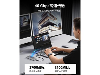 40Gbpsの超高速データ転送を実現。数GBの動画ファイルも数秒で転送が完了します。MacBook Proや最新のWindows PCの性能をフルに引き出せます。