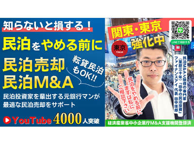 関東・東京エリアの民泊売却相談を募集。元銀行マンが民泊M&Aをサポート|収益化済み民泊をYouTubeで鑑定