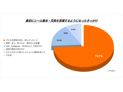 シール収集を意識し始めたきっかけを尋ねたところ、約74.1%が「子どもが興味を持ち、欲しがったこと」と回答しました。SNSや広告よりも、子どもをきっかけに関心を持つケースが圧倒的多い結果になりました。