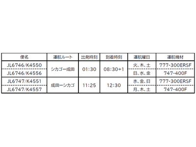 JALは、2025年5月より開始したKALITTA航空との定期貨物便におけるコードシェアについて、2026年度上期の路線便数計画を決定しました。昨年12月より週5便で運航している成田=シカゴ線をさらに増便し、4月1日(水)からは週6便で運航します。