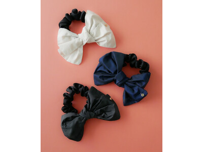 インパクトあるサイズ感のシュシュ。しわ感のあるダブルリボンデザインが甘くなりすぎず、さっと結ぶだけで抜け感のあるヘアスタイルに。洗いざらしのような質感のホワイト・グレーと、艶感のあるネイビーの3色展開です。