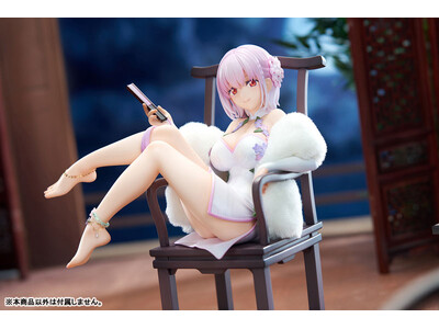 椅子にゆったりと身を預け、扇子を手にした優雅なポーズで立体化。