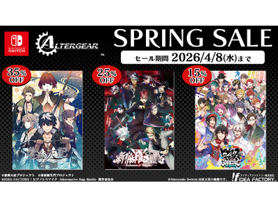アイディアファクトリー株式会社(代表取締役社長:佐藤 嘉晃/所在地:東京都豊島区)の男性キャラクターの“友情”“絆”に重きをおいた作品を中心に展開するゲームブランド「ALTERGEAR(オルタギア)」は、ニンテンドーeショップ内にて、最大35%OFFで購入できる「SPRING SALE」を開催いたします。