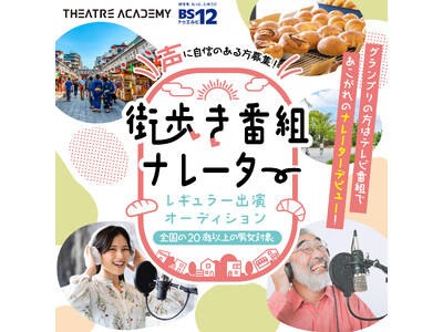 鈴木福・小林星蘭など多くのタレントを輩出しているテアトルアカデミーが、街歩きを通してとっておきのパンを紹介するBS12の番組「パン日和」とのコラボレーション企画として、『街歩き番組「パン日和」ナレーター出演オーディション』を開催いたします。