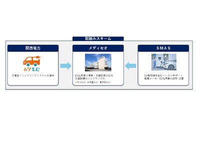 SMAS(住友三井オートサービス株式会社)〔本社:東京都新宿区、代表取締役社長:麻生 浩司〕、株式会社メディパルホールディングス〔本社:東京都中央区、代表取締役社長:渡辺 秀一、以下、「メディパル」〕の連結子会社である株式会社メディセオ〔本社:東京都中央区、代表取締役社長:今川 国明、以下、「メディセオ」〕、関西電力株式会社〔本社:大阪市北区、取締役代表執行役社長:森 望、以下、「関西電力」〕は、製薬業界におけるカーボンニュートラル実現に貢献することを目的として、製薬企業のMR(医薬情報担当者)が使用する社用EVの充電インフラを共同利用できる「充電器シェアリング」モデルを3社で構築しましたので、お知らせします。