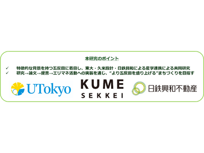 日鉄興和不動産株式会社(本社:東京都港区、代表取締役社長:三輪 正浩)は、東京大学大学院 新領域創成科学研究科 社会文化環境学専攻 空間計画研究室(教授:出口 敦)および株式会社久米設計(本社:東京都江東区、取締役社長:井上 宏)と共同で「五反田地区におけるイノベーション・ディストリクトの形成プロセスと生活圏のデザインに関する共同研究」を開始しましたのでお知らせいたします。