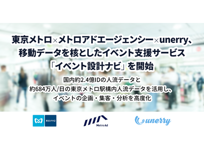 東京地下鉄株式会社(本社:東京都台東区、代表取締役社長:小坂 彰洋 、以下「東京メトロ」)、株式会社メトロアドエージェンシー(本社:東京都港区、代表取締役社長:川田 博之、以下「メトロアドエージェンシー」)、株式会社unerry(本社:東京都港区、代表取締役社長CEO:内山 英俊、以下「unerry」)の3社は、新サービス「イベント設計ナビ」を2026年3月より提供開始いたします。