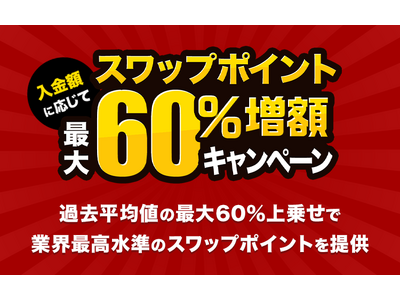 株式会社外為どっとコム(本社:東京都港区、代表取締役社長:竹内 淳)は、店頭FX『外貨ネクストネオ』におきまして、2026年3月30日(月)より「入金額に応じてスワップポイント最大60%増額キャンペーン」を実施します。