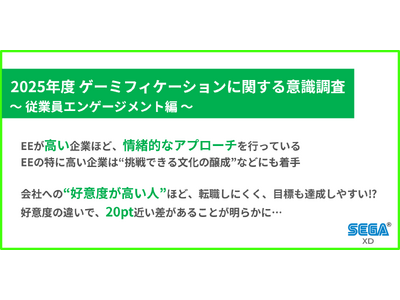 ゲーミフィケーション事業を展開する株式会社セガ エックスディー(本社:東京都新宿区、代表取締役 社長執行役員CEO:谷 英高、以下:セガXD)は、ビジネスパーソン(全国の20~50代男女)1,000人(うち従業員エンゲージメントおよび組織文化醸成従事者179人)を対象に